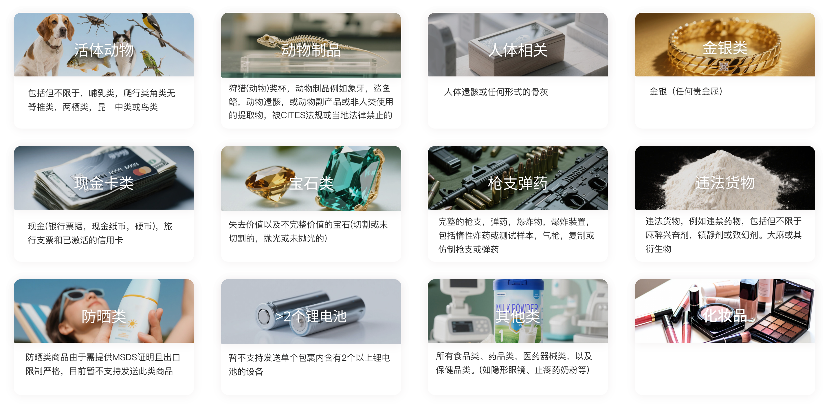 1、每个国家地区的禁制品限制都不相同,所以在使用DHL服务时,建议用户先在DHL官网查询想要发往国家的海关进境物品要求限制(如无法向英国地区输入含有动物成分的物品以及武器刀具等)。