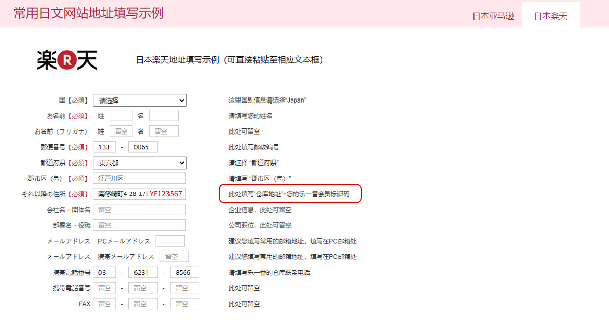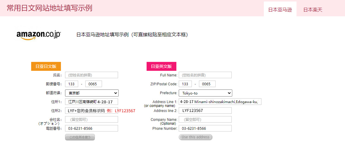 注:乐一番转运根据您的会员标识码识别包裹是否属于您,因此在购物网站填写收货地址时一定要记得填写正确的会员标识码哦!乐一番仓库地址仅