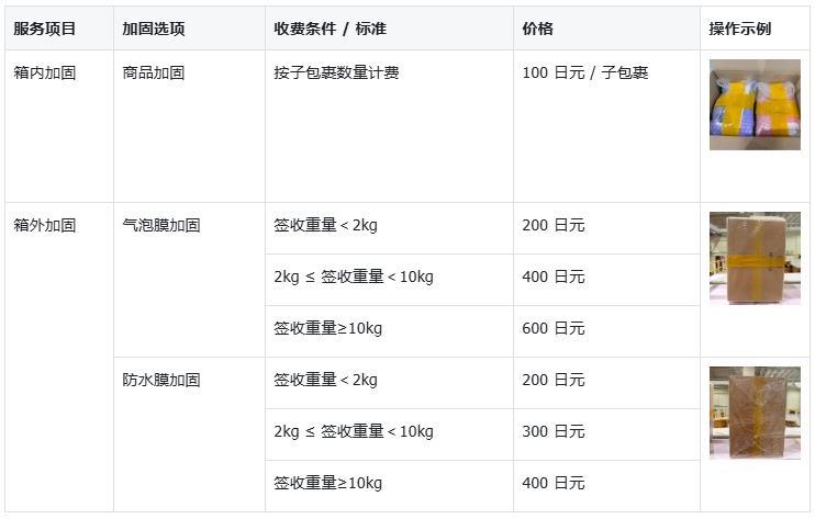 为确保商品在运输途中的安全,我们将对箱内所有商品进行整体捆包加固。操作员会根据实际情况将商品捆为一包或多包(注意:不提供单件商品独立加固),此举能有效降低运输风险,保障商品完好送达。