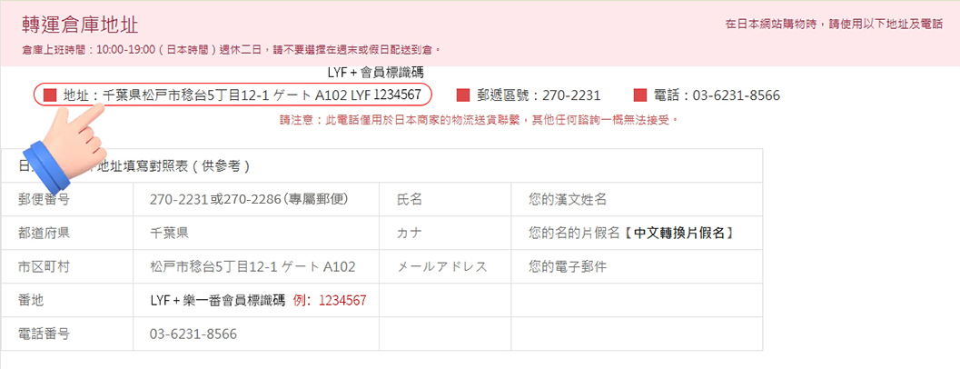 在文字地址和專屬郵件不衝突的前提下,郵局/佐川/黑貓等配送業者會參考專屬郵遞區號,即使偶爾賣家/商家文字地址未寫完整,包裹也可依據專屬郵遞區號送達敝司倉庫,減少配送快遞業者的丟件率。
