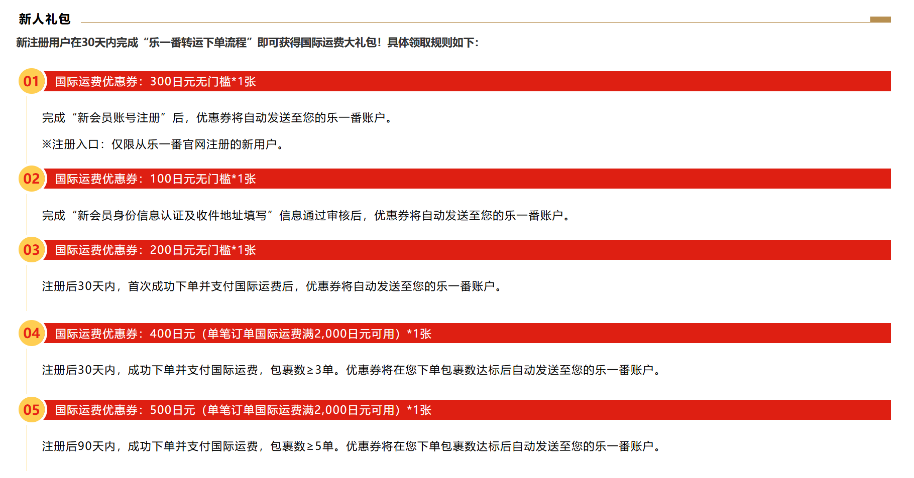 哦!別忘了!樂一番還準備了新人專屬的運費大禮包,為大家的轉運之旅開個好頭!
