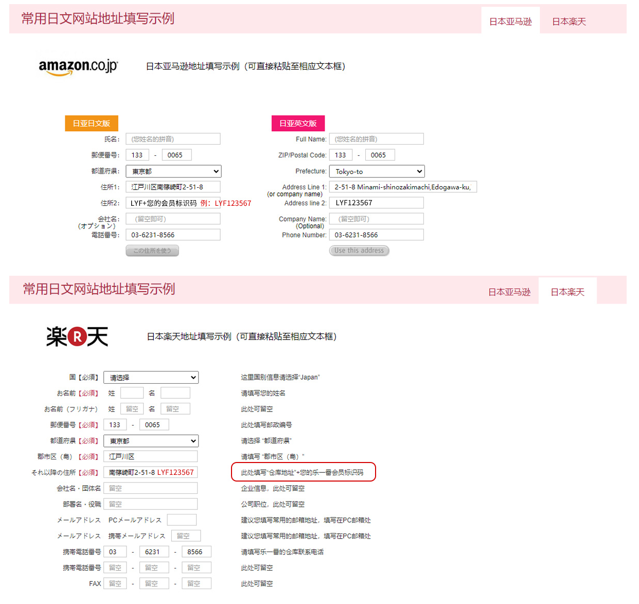 •以下是樂一番日本倉庫以及一些常見日本網站(亞馬遜、樂天)的資訊填寫範例,希望能夠幫助到您,讓大家都滿載而歸。